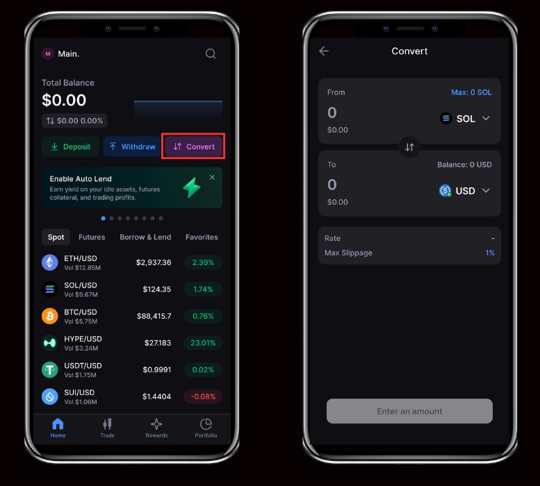 The convert feature is available across supported Backpack Exchange platforms, including web and mobile.