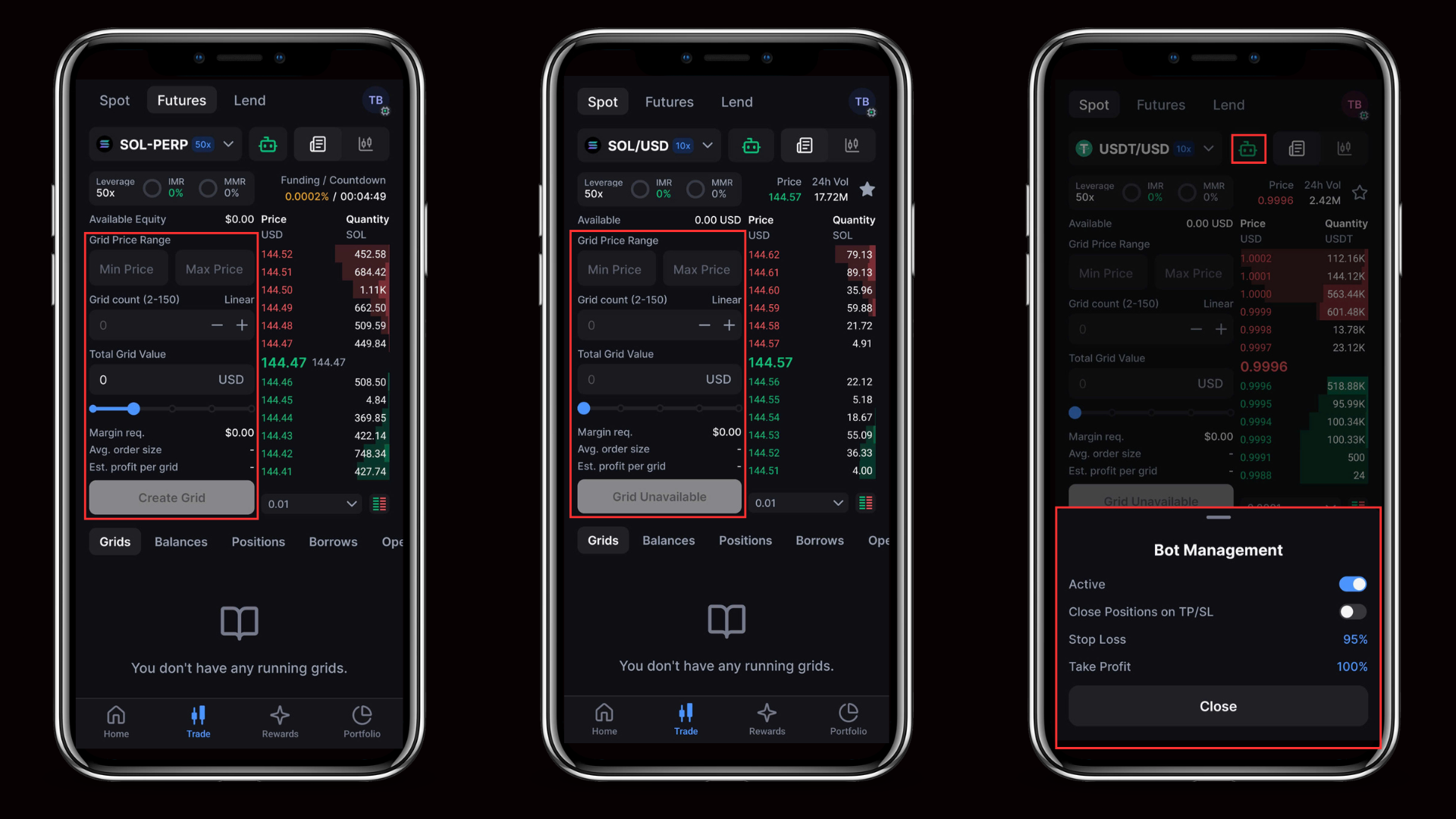 Backpack built Grid Bots on mobile to make automation native, accessible, and secure. Users can manage strategies wherever they are without sacrificing custody, clarity, or control.