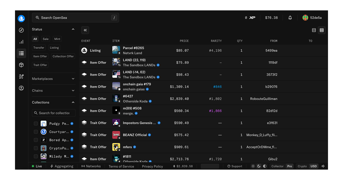 - XP-based rewards for making competitive collection offers and listing eligible NFTs.