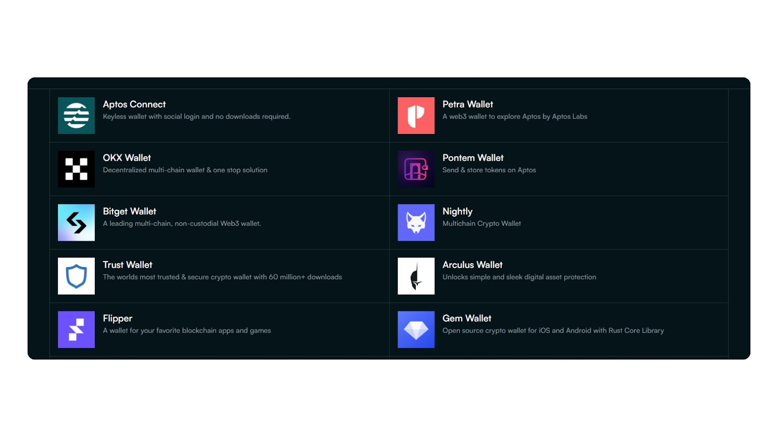 - Petra: Built by Aptos Labs to serve the Aptos ecosystem Aptos wallet