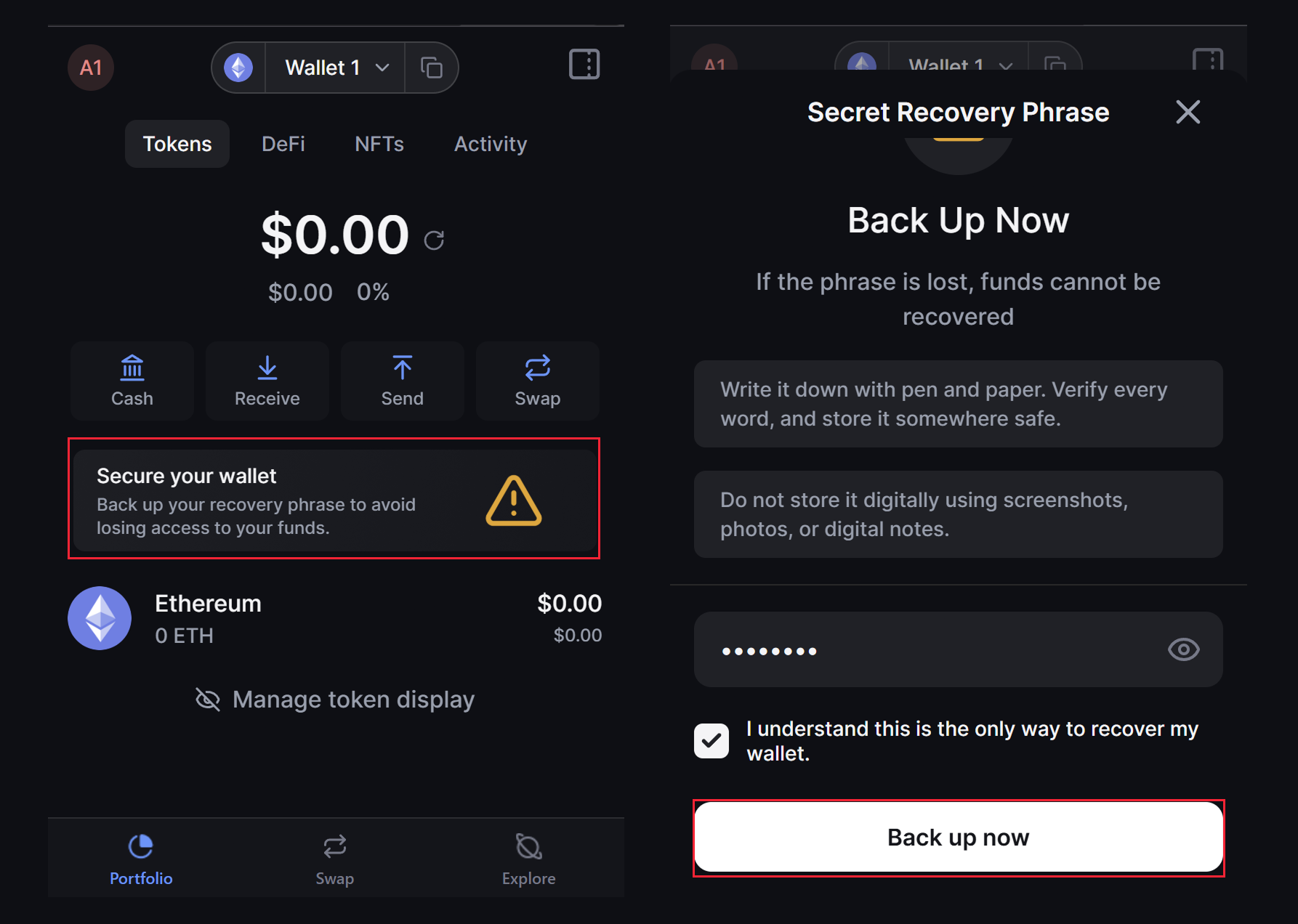Your recovery phrase is the master key to your wallet. Anyone who has it can access your funds. Write it down on paper, store it securely offline, and never save it digitally. Avoid screenshots, cloud storage, or email drafts.